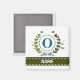 A delicate ivy wreath with a blue striped bow is layered over a fresh white background. Wedding appropriate design features the monogram "O" in blue. Magnet can be personalized with any name over the green ribbon banner. Design tip: For the font shown here, use all caps for the name.