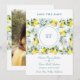 Delicate Lemon Branch and Flowers Tiles Wedding Save the Date Cards with Initials and Back Photo.