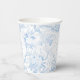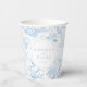 Elegant romantic light blue floral pattern in Chinoiserie Chinese porcelain style wedding paper cups with bride and grooms monogram.