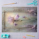 A single bearded iris rises with quiet majesty in this romantic impressionistic panel from the Delicate Moments collection. Painted in soft lavender, blush, and violet tones against a luminous sage green background, the iris is encased in a beautifully ornate gold frame with delicate scrollwork and rococo detailing. Clusters of soft purple wildflowers bloom at the base, adding depth and a dreamy cottage garden quality.