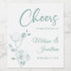 Elegant customizable wine labels for your wedding reception, featuring beautiful and delicate mint green orchids line drawing on one side, over a classic white background, and the wording "Cheers to the wedding of" in green fonts. Easily edit the template fields to add the bride and groom names in a classy green script, and your wedding date in a modern all-caps font.