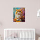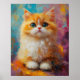 A charming digital painting of a Persian kitten with a luxurious orange and white coat, expressive green eyes, and a soft pastel background. This artwork blends realism with painterly abstraction, capturing the gentle elegance and adorable curiosity of the Persian breed.