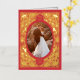 Delicate Poinsettia Red Oval Frame Photo Foil Holiday Card