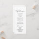 This delicate printable or printed wedding program is perfect for a modern wedding. The romantic minimalist design features lovely and elegant black typography on a white background with a clean and simple look. Include the name of the bride and groom, the wedding date and location, thank you message, order of service, bridal party and an optional "in loving memory" memorial.