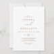 This delicate rose gold calligraphy casual wedding invitation is perfect for a modern wedding. The romantic minimalist design features lovely and elegant dusty rose blush pink typography on a white background with a clean and simple look.