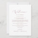 These delicate rose gold welcome letter & itinerary cards are perfect for a modern wedding. The romantic minimalist design features lovely and elegant dusty rose blush pink typography on a white background with a clean and simple look. The front of the card features a welcome letter and the back of the card features the wedding itinerary. These notes are perfect for destination weddings and hotel guest welcome bags.