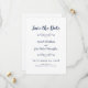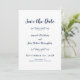 Elegant, delicate save the date cards in beautiful navy blue and white are classic, formal and timeless. Borderless romantic design allows you to easily choose the paper shape for your engagement announcement. Two decorative flourishes each containing a single heart delicately envelope the name of the bride and groom. For optimal results skip lines and capitalize as in sample.