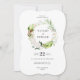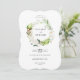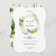 Delicate tropical floral wreath wedding invitation. Soft muted tones add a calm elegance to this wedding suite.