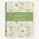 Delicate Watercolor Camomile PatternCustom Monogram Name Notebook. Personalized, Lovely white camomile watercolor flower pattern and name and monogram on a green background. Beautiful pattern of chamomile flowers from the garden with green foliage. Great romantic personalized gift for any occasion for girls who love white spring and summer flowers, chamomile, and watercolor style. Lovely+White+flowers, white+chamomile, white+floral, white+flowers, name+camomile+pattern, girly+white+blossom+flowers, white+and+green, blooming, botanical, bloom, watercolor, bouquet, girly, girls