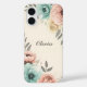 This elegant personalized phone case features delicate sketchy flowers with soft watercolor textures in blush pink, mint green, and pale yellow.