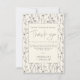 This beautiful design features a soft, hand-drawn style seamless wildflower pattern that gently frames your personalized message with natural grace. The botanical inspired border brings a charming garden-party feel, capturing the essence of summertime and autumn wildflowers. Combined with modern, easy to read typography paired with elegant handwritten script, the layout strikes a perfect balance between sophistication and a delicate, romantic aesthetic. This refined and harmonious design is ideal for wedding thank you cards or party celebrations, offering a timeless look that evokes nature’s beauty with subtle elegance and a fresh, soft appeal.