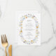 Elegant wildflower framed menu card featuring delicate summer wildflowers in blue, yellow, orange and purple.