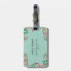 Luggage tag in pale green with hand-drawn, tiny wildflowers surrounding your name and initial. Add your address to the back.