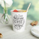This hot beverage cup features whimsical hand lettering that says "Delicious Coffee Sold Here" on a white background. The lettering features decorative swashes and ornamental swirls. You can add your business logo on the back.