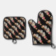 DELICIOUS CUPCAKES DESERT SHOP, Pink Black Fuchsia Oven Mitt & Pot Holder Set