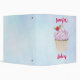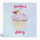 A binder for your recipes or other purposes. Designed with an illustration of a delicious cupcake with pink swirls and a berry with leaves nestled in the frosting.