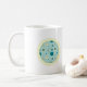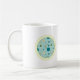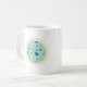 Microscopic diatoms, single-celled algae with a cell wall made of silica, create a fun pattern on a sea of pale turquoise and show off some of the many shapes that they come in, including circles, stars, squares, and others. A simple round diatom masks the pattern to create a whimsical final touch. This mug is available in a variety of colours, sizes, and styles including classic mugs and steins.