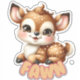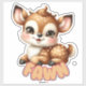 This large nursery sticker features an adorable, cartoon-style fawn with a delightful and cheerful expression. The fawn is depicted sitting with its legs tucked under its body, looking playfully at the viewer. It has soft brown fur with white spots on its back, large expressive eyes, and blushing cheeks. The fawn's big ears and a tuft of hair on its head add to its endearing charm. Below the fawn, the word "FAWN" is written in bold, playful letters, perfectly complementing the cute and friendly design.