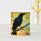 This is a beautiful, fun Raven perched on a woodland tree branch.
