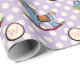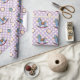 Take a stroll with this fun, stylized pram decorated with bright pink, orange, green, and blue stripes on the cover and a pattern reminiscent of wooden blocks on the body. The pastel mint and cream zigzags in the background accent the brightly coloured stroller. Customize the monogram block with the soon-to-be little one's last initial to create a truly unique wrapping paper for your chosen gift. Be sure to check out the full Delightful Hearts Rocking Horse collection for more great gifts and products for a baby shower or the little one in your life.