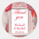 This delight thank you red sticker features a rustic motif complete with flowers, wooden images, white lace and leaves. You customizable information such as "Thank you", couple's name and wedding date can be entered into the templates. Start customizing today!
