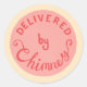 This sticker features festive hand lettering that says “delivered by chimney” in red text on a pink background. This would be perfect for a Christmas card envelope seal or to decorate your Christmas gifts to look like they have been delivered by North Pole airmail.