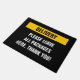 Notice to delivery people to please leave packages here on the mat, along with a thank you. Attention getting yellow and white on black design with fully customizable text to alert your delivery people. Can be placed on the floor like a regular doormat or on a table to receive your packages.