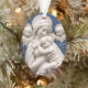 Il s'agit d'une reproduction à plat d'un relief en terre cuite verni de la Renaissance en bleu et blanc par l'atelier d'Andrea della Robbia, représentant Madonna et Child, désormais dans le domaine public. Les caractères sont blancs, l'arrière - plan est bleu. La Vierge Marie a le bébé Jésus dans ses bras, à sa poitrine; elle avait, incliné, le touche, dans un geste de tendresse maternelle. Il y a deux chérubins - des têtes d'enfants avec des ailes - un ange de chaque côté.