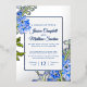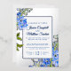 Beautiful delphinium spikes painted blue botanical art watercolor and silver foil or foil of your own choice change of venue, open-air garden wedding invitation. Edit this wedding invitation with your own name, event details, and wording and engagement or another photo on the reverse or remove the photo and have just a floral repeat pattern instead. Other matching wedding items available. Unique design and original watercolor fine art painting by Sarah Trett. www.sarahtrett.com for www.mylittleedenweddings.com