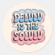 A playful Y2K-inspired typography print featuring the phrase "Delulu is the Solulu" in a bubbly, cloud-like font. The pastel pink and blue gradient adds a dreamy, nostalgic touch to the design. Perfect for those who love fun, retro aesthetics with a modern twist!