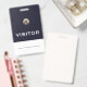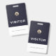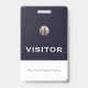 Gardez le suivi des visiteurs et assurez-vous de retourner vos badges avec ce badge bleu de visiteur avec un logo d'emblème d'or métallique brossé qui peut être customisé pour votre marque avec une bannière de texte personnalisable. Le design est attrayant et professionnel, parfait pour toute entreprise ou événement.