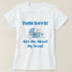 La fière nouvelle maman et papa de bébé jumeaux va adorer ce design mignon avec deux lapins garçon et le texte bleu qui dit "Twin Boys! Posez-Moi Des Questions Sur Mes Fils !". T-shirts Twin Boys, cartes, boutons, magnets, sacs, mousepads, et plus !