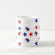 Illustrated red, white and blue Democrat Donkey with stars on white.