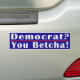 Large, easily read "Democrat?, You Betcha!". By D. Bennett from Balance America.