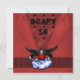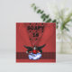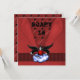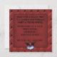 Crimson red metal look with a parched folded paper overlay and a chain mail band with a black winged demon hunter on a cloud complete with a sword. Perfect for a teens 16th birthday.