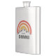 The product is a good size and came exactly as it was pictured. The lid is not attached to the flask, which could be dangerous on drunken nights... The print came out surprisingly well and looks very sharp. Would definitely recommend.