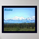 A digital rendering of Denali, also known as Mt. McKinley, North America's highest mountain at 20,237 feet above sea level. Customizable text reading "Alaska" also appears. The word "denali" derives from a Koyukon Athabaskan word meaning "The High One." This image is derived from a US Fish And Wildlife Service photograph. While the peak of Mt. Everest is higher above sea level than that of Mt. Mckinley if you measure from the base of the mountain to its peak Mt. Mckinley is tallest mountain in the world.