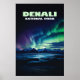 Denali National Park Alaska Northern Lights Retro Poster