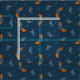 Cool denim blue fabric with a tan brown and blue cowboy boots and stars pattern