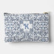 Denim Blue Fancy Floral Pattern Personalized Accessory Pouch