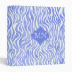 NewParkLane - Avery Ring Binder, with a funky, denim blue watercolor zebra pattern, and a turned square frame for your monogram.