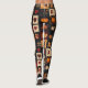 This leggings features a denim-textured folk art quilt pattern, blending autumn and country-style charm. The patchwork is composed of square blocks stitched together, each showcasing a distinct motif such as pumpkins, fall leaves (oak and maple), birds, sunflowers, hearts, and stars, all in a rustic primitive Americana style. The warm palette of oranges, reds, and browns contrasts beautifully with dark blue and black backgrounds, adding depth and a cozy, handmade feel. Perfect for farmhouse décor, autumn crafts, Thanksgiving projects, rustic textiles, and country-inspired DIY designs.
