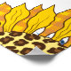 Denim hearts and leopard sunflowers form an abstract, stylish pattern.