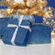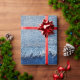 Denim jeans background. Ripped denim fabric with b Wrapping Paper