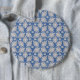 Denim texture background decorated with a repeat pattern of white-cream lace