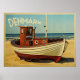 A beautiful Danish beach scene seaside in Denmark with a fishing boat on the sand.