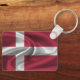Keychain with the flag of Denmark in wavy fabric style design. This design features the flag colours and design with a beautiful waving material textured effect. This flag design is a great way to show you are proud to be from Denmark.