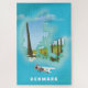 Denmark map illustrated travel poster cartoon print.
