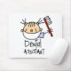 A female stick figure dental assistant with face mask and a red toothbrush on Dental Assistant T-shirts, sweatshirts, hoodies, mugs, cards, stickers, tote bags, keychains, buttons, magnets, keepsakes, ornaments, and other dental assistant clothing and gifts.