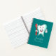 Spiral notebook with an illustration of a cartoon style big white tooth smiling happily holding a red toothbrush and giving the thumbs up sign.